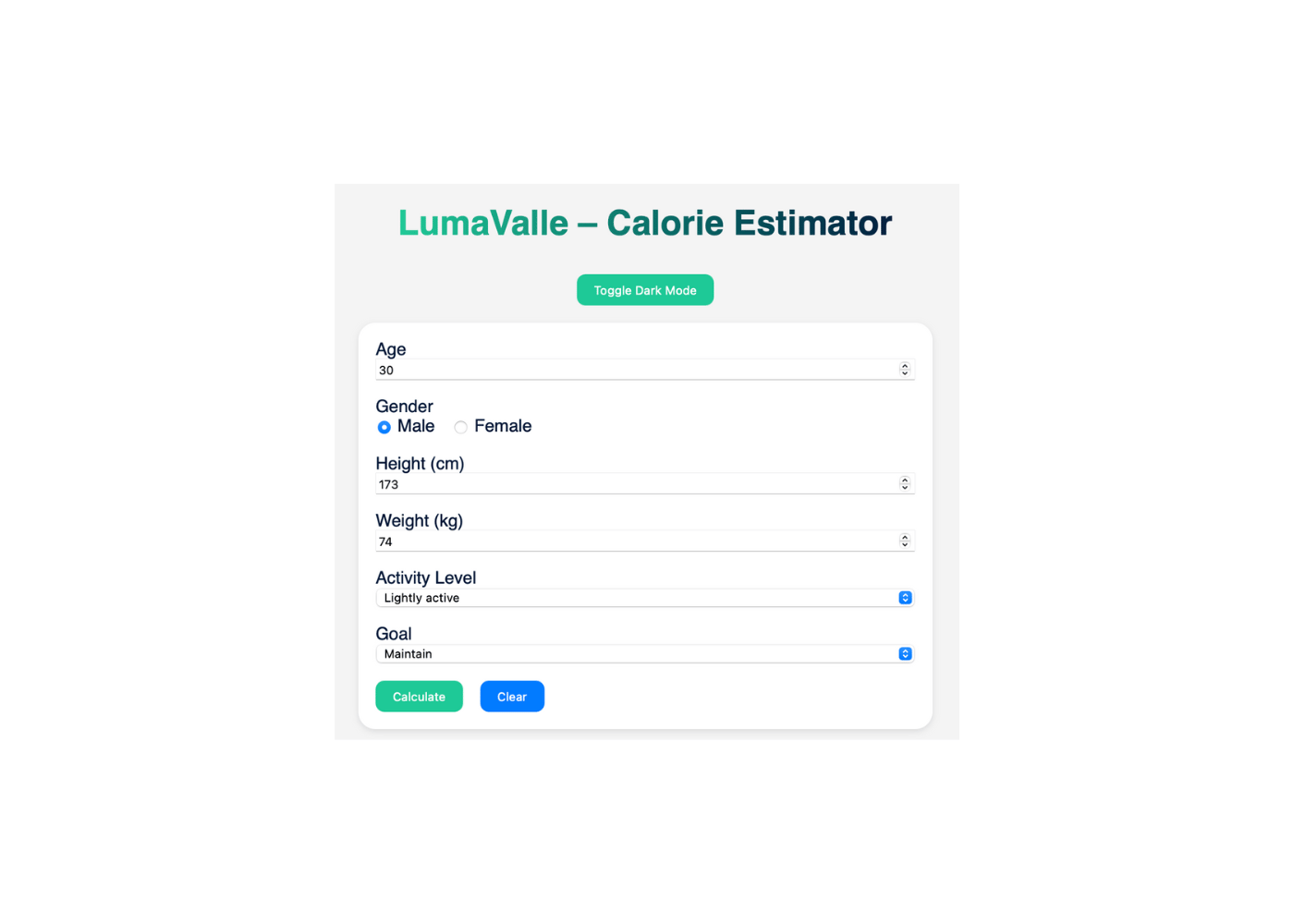 LumaValle – Calorie Estimator