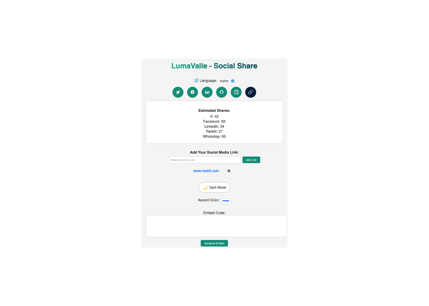Easily share content across your favorite social platforms with this simple, ready-to-use tool. Whether you’re promoting a blog post, a project, or a personal message, LumaValle Social Share helps you do it quickly and without any setup.