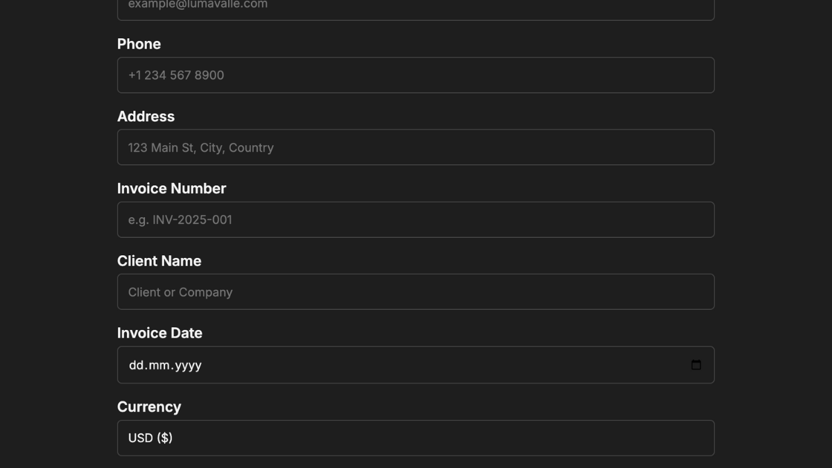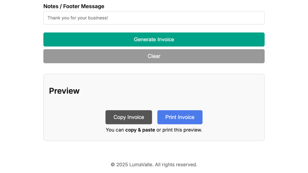 Lumavalle Invoice Generator – Simple, Fast & Installable