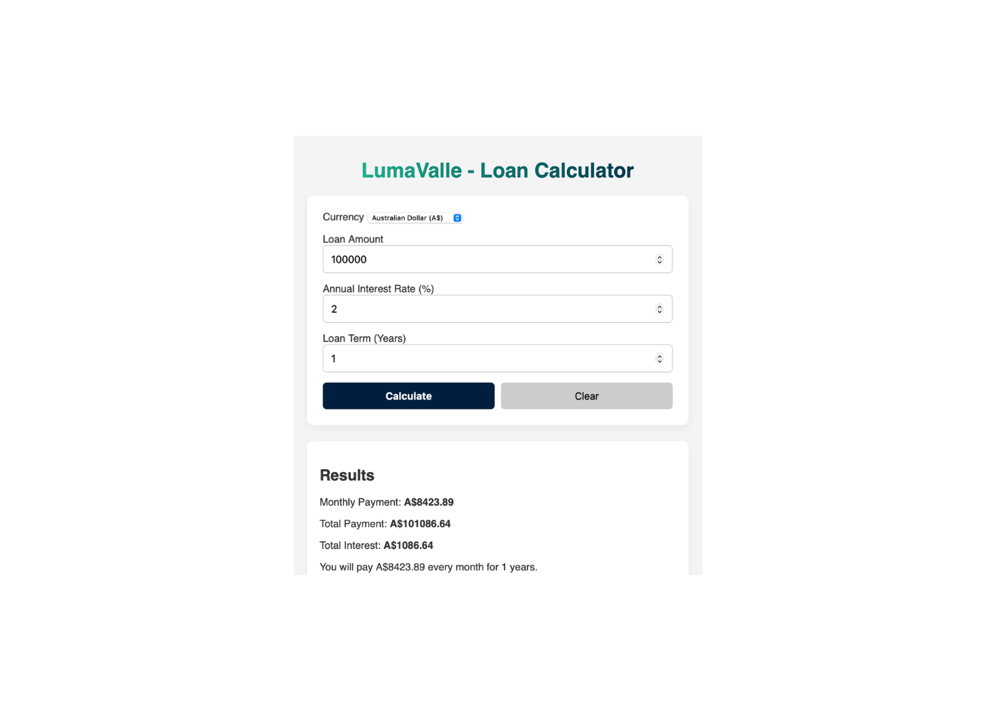 LumaValle-Loan Calculator