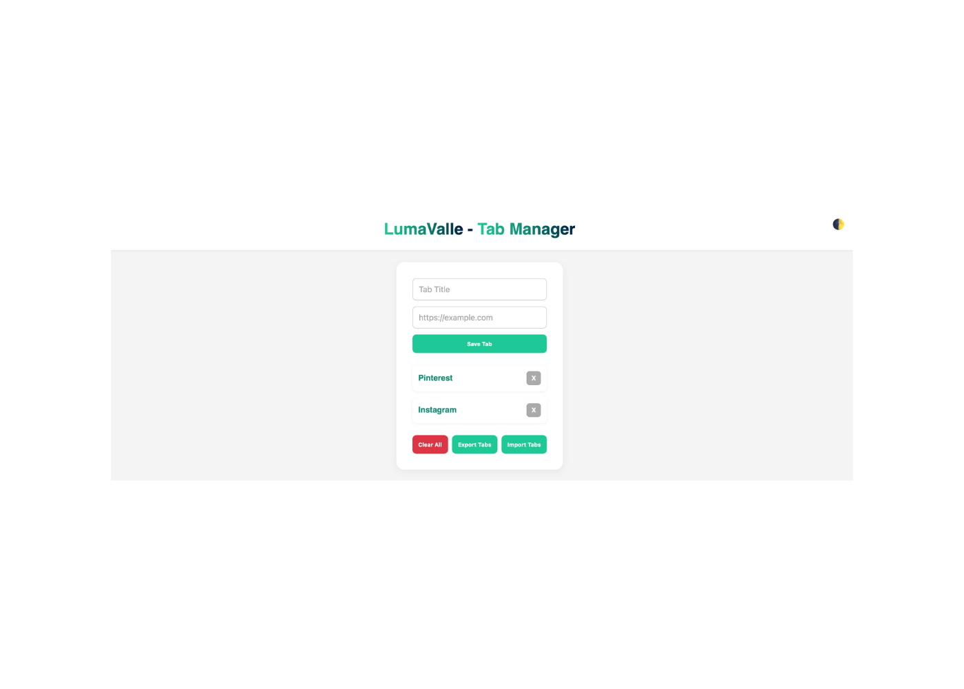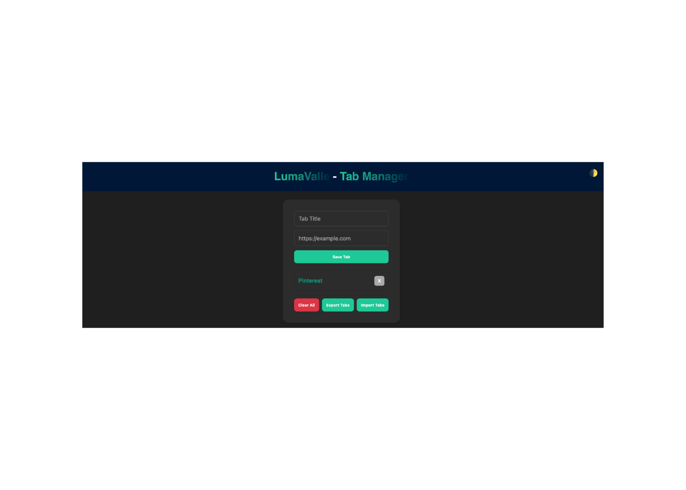 Keep track of your favorite links without the clutter. The LumaValle Tab Manager helps you save, organize, and reopen tabs easily — all in one clean, responsive app that runs right in your browser.