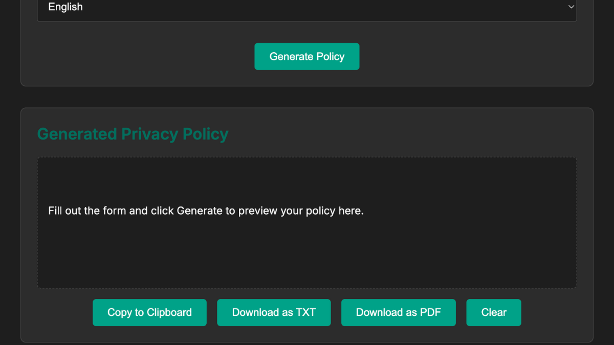 - Copy your privacy policy instantly – ready to publish